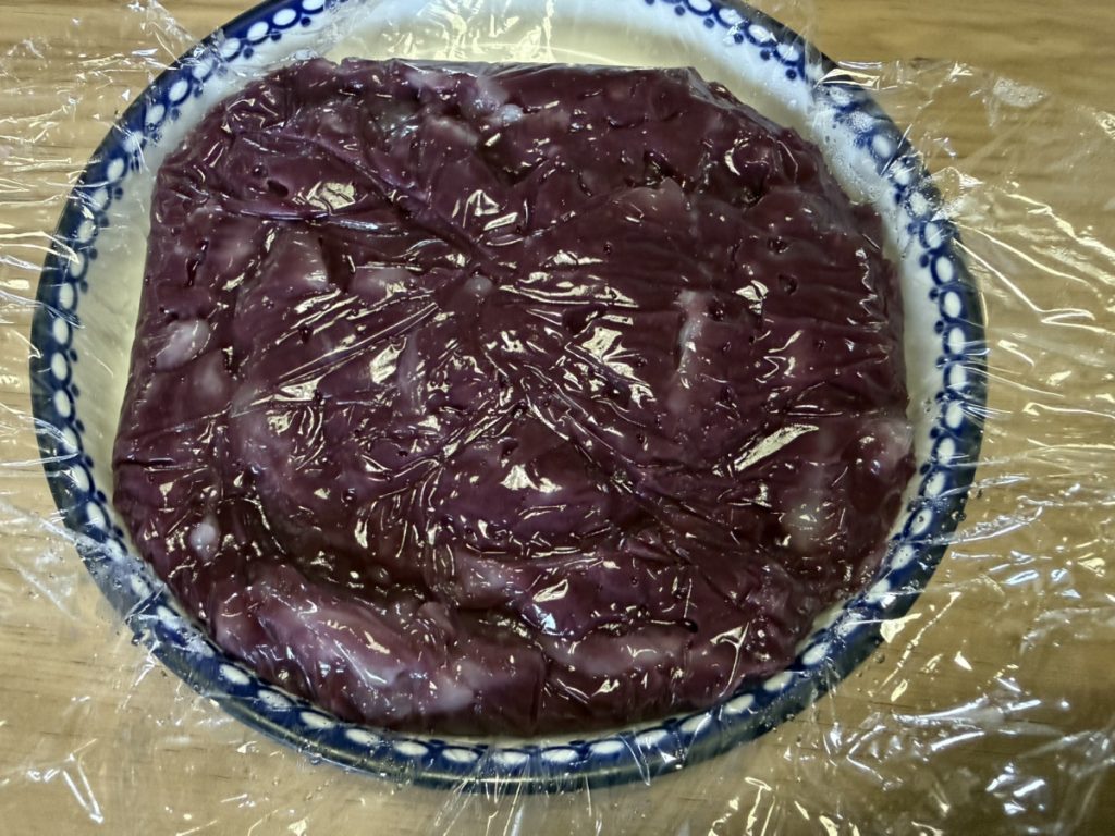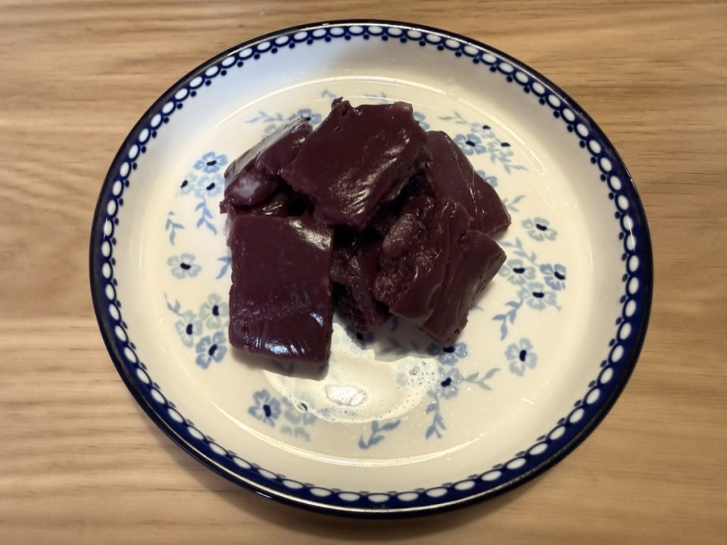 もちもちとわらび餅のような食感に甘酸っぱいブルーベリー酢の味が楽しい♪